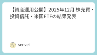 株投資 【資産運用公開】2025年12月 株売買・投資信託・米国ETFの結果発表 2025年12月 株売買・投資信託・米国ETFの結果発表半年に1回行っている資産運用の結果発表。それぞれ以下のとおり発表していく。株売買:2025年の株売買と配当金の結果と今までの累計を発表する投資信託:2025年の評価額と今までの利益確定... 2026.02.11 株投資